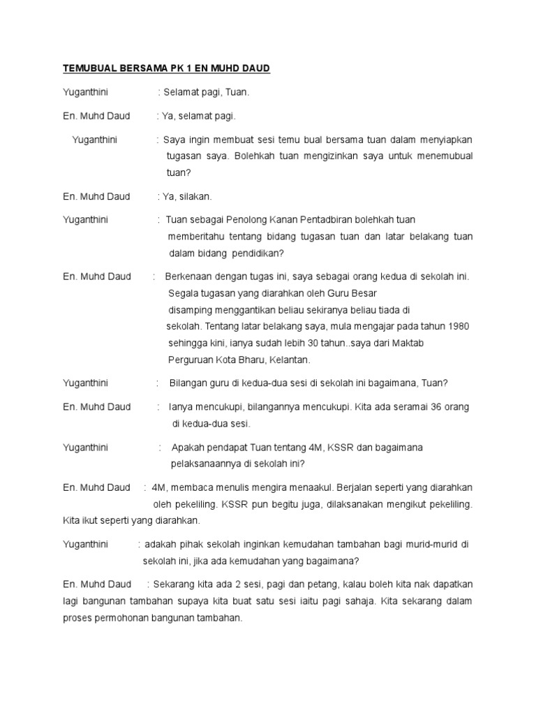 Transkrip Temubual from online.anyflip.com Proses pengumpulan data kualitatif yang umumnya menitikberatkan pada wawancara dan observasi partisipasipatoris membuat analisis datanya berupa analisis tekstual dari hasil transkrip. Transkrip temu bual berikut adalah rakaman temubual secara lisan mengenai fokus temu bual iaitu konsep budaya, kepelbagaian kelompok dan kepelbagaian sosiobudaya. Tentukan node referensi/ground vg ! Dapat menjembatani untuk hubungan ke pihak vertikal secara cepat dan mudah 2. Beberapa contoh format transkrip yang sudah kami lakukan. Contoh transkrip temubual kajian tindakan. Kalau kategori dia yang kena pajak di daerah, dia kan kena (tidak jelas 00:00:05, ada suara latar belakang) otomatis kalo misalnya ya di kita. Semua data seperti catatan, foto, video dianalisis secara analisis.