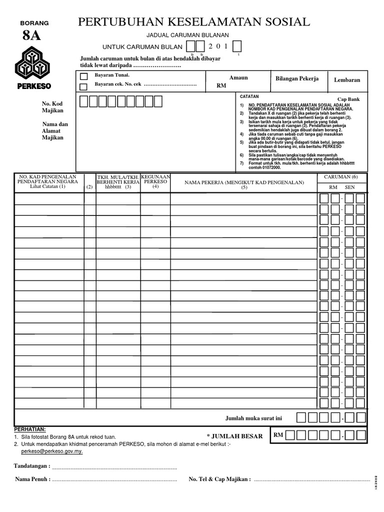 Borang pendaftaran pemberhentian sebagai majikan setiap majikan yang berhenti daripada menjadi majikan, hendaklah melengkapkan borang 1a dan mengemukakan bersama dokumen berkaitan dalam tempoh 30 hari pemberhentian tersebut melalui portal assist. 2) pendaftaran majikan & pekerja. Pembayaran caruman, tunggakan caruman dan fclb. Bagi tujuan pendaftaran, majikan dikehendaki mengisi borang pendaftaran majikan (borang 1) serta borang pendaftaran pekerja (borang 2) bersama dengan dokumen yang ditetapkan (sila dapatkan senarai semak menerusi laman sesawang atau pejabat perkeso) dan mengemukakannya ke pejabat perkeso berdekatan. 1) borang permohonan enrolment penggunaan portal assist.